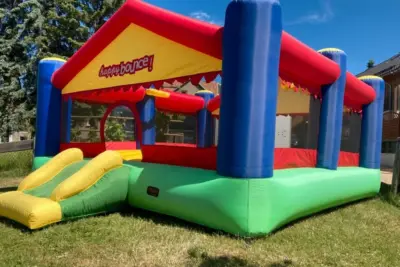 Das bunte Spielehaus lädt Kinder zum Springen, Spielen und Austoben ein. Auf der großzügigen Hüpf-Fläche ist genügend Platz für kleine Abenteuer und jede Menge Bewegung.